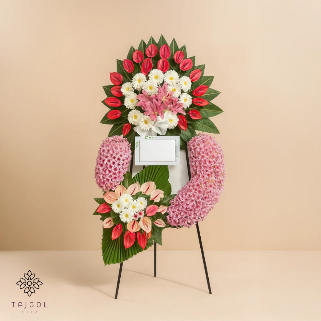 | برگهای سبز و گیاهان تزئینی: | تعداد زیادی برگ و گیاهان سبز برای تزئین تاج گل |