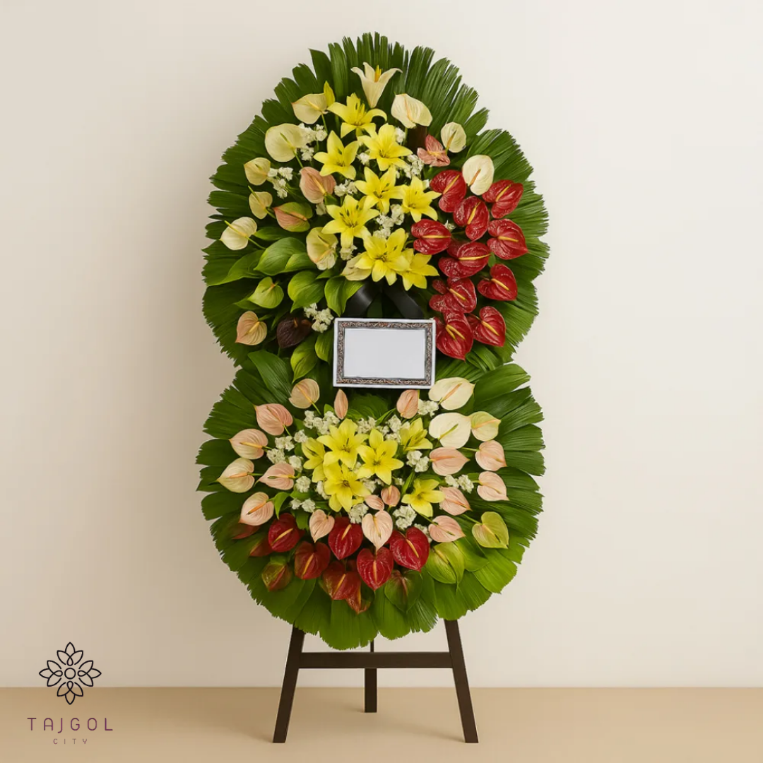| برگهای تزئینی (انواع برگ سبز پهن و برگ نخل) | حدود ۳۰ تا ۳۵ شاخه |